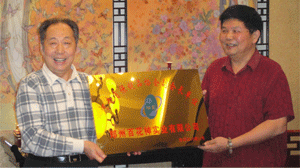 河南省保健協(xié)會(huì)會(huì)長(zhǎng)韓文興先生向《百花散》傳人梅安富先生授協(xié)會(huì)副會(huì)長(zhǎng)銅牌
